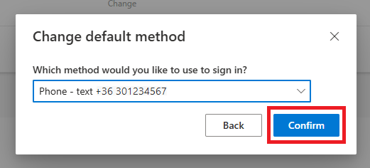 2. The default secondary authentication method is the one what was added at the first time. To modify the setting click the Change link.