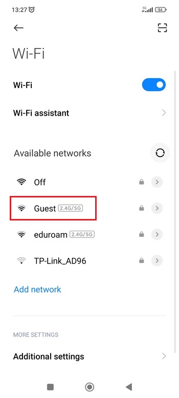 - Enter to the Wi-Fi menu and choose Guest.