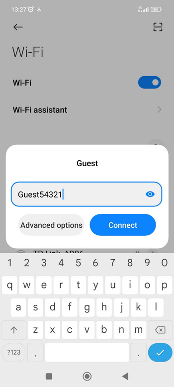 - The password is Guest54321 and tap on Connect.