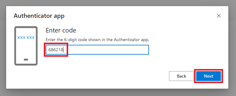 10. Enter this code in the browser window and click Next.