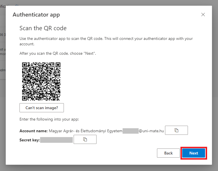 12. Switch back to the MyAccount page and click the Next button on the window appeared in step 8,