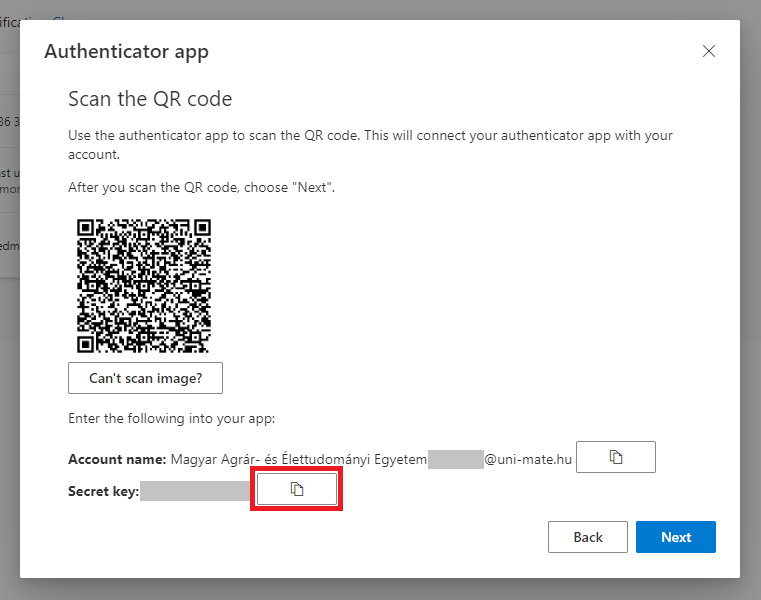 8. On the next window, click on the copy icon next to the secret key.