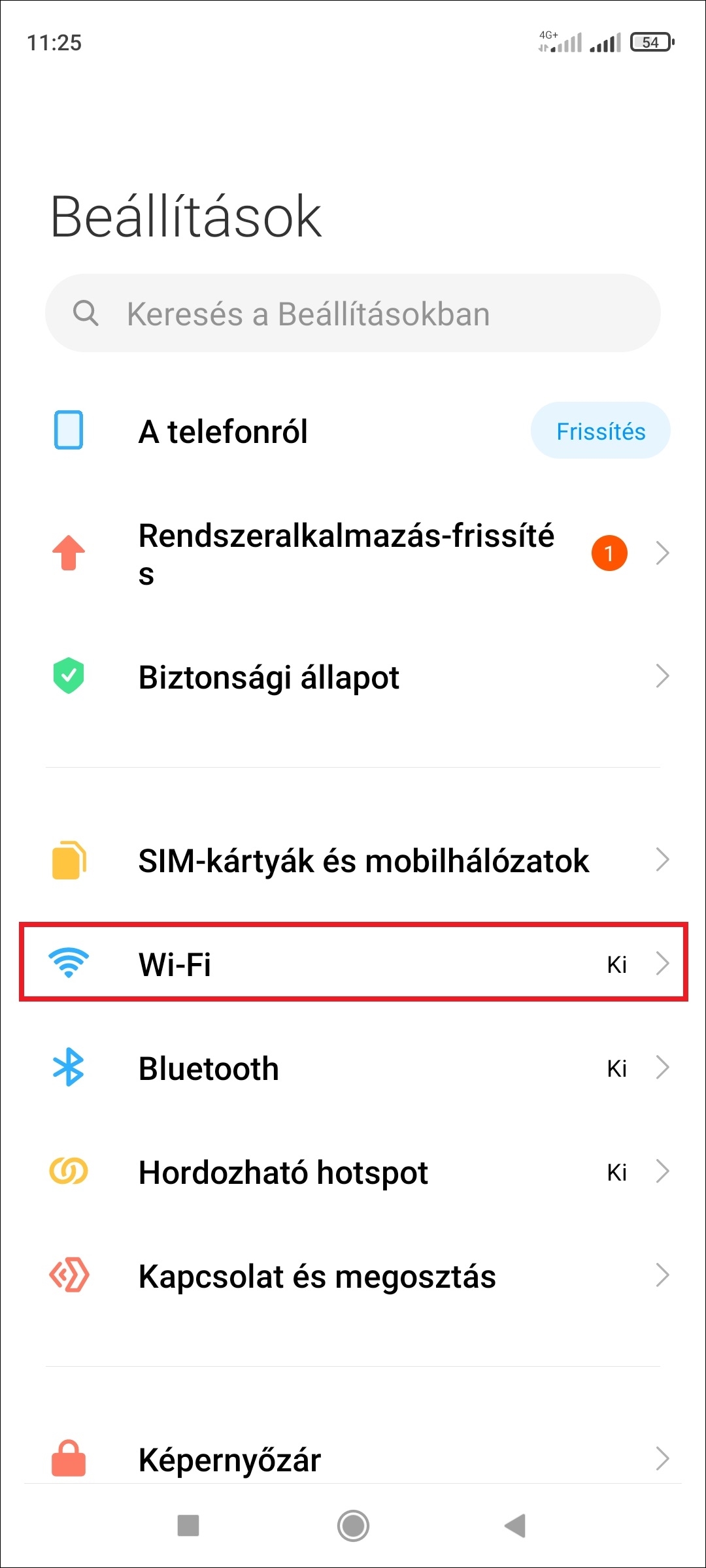 1. Az Android rendszerrel rendelkező készülékén a Beállítások-nál válassza ki a Wi-Fi menüpontot.