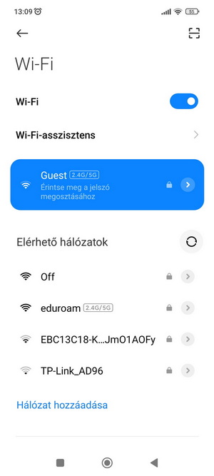 - Válassza ki a Wi-Fi hálózatok közül a Guest kapcsolatot.