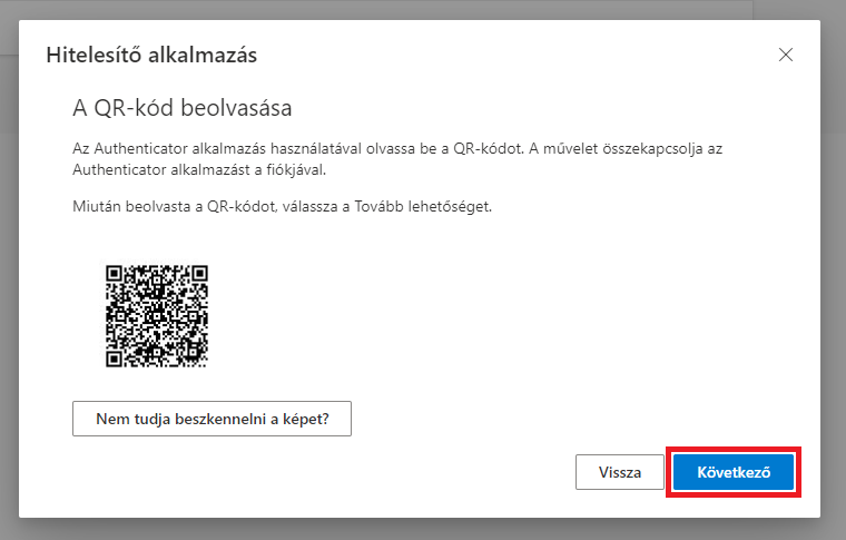 9. Olvassa le a telefonjával a megjelenő QR-kódot, majd kattintson a Következő gombra.