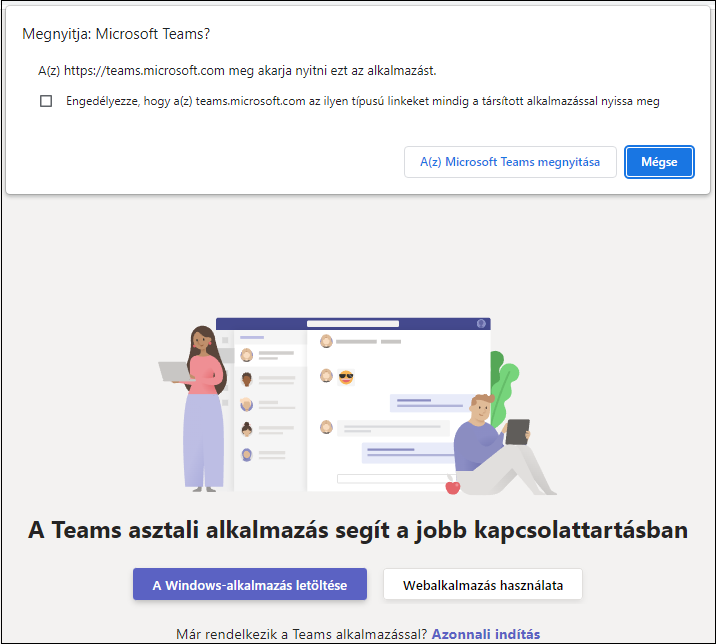 6. Eldöntheti, hogy a Teams asztali vagy webes verzióját kívánja használni.