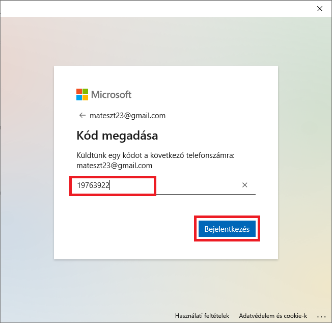 12. Nyissa meg a levelet és az alkalmazásban adja meg a kapott kódot, majd kattintson a Bejelentkezés gombra.