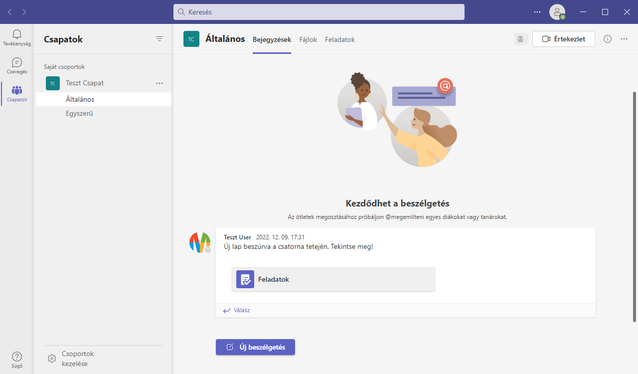 15. Ha első alkalommal indítja el a Teams alkalmazást, akkor egy rövid képes ismertetőt láthat. Ennek a diáit a Tovább gombra kattintva tudja léptetni. A bemutató után elérhető a Teams csapat melyhez meghívót kapta.