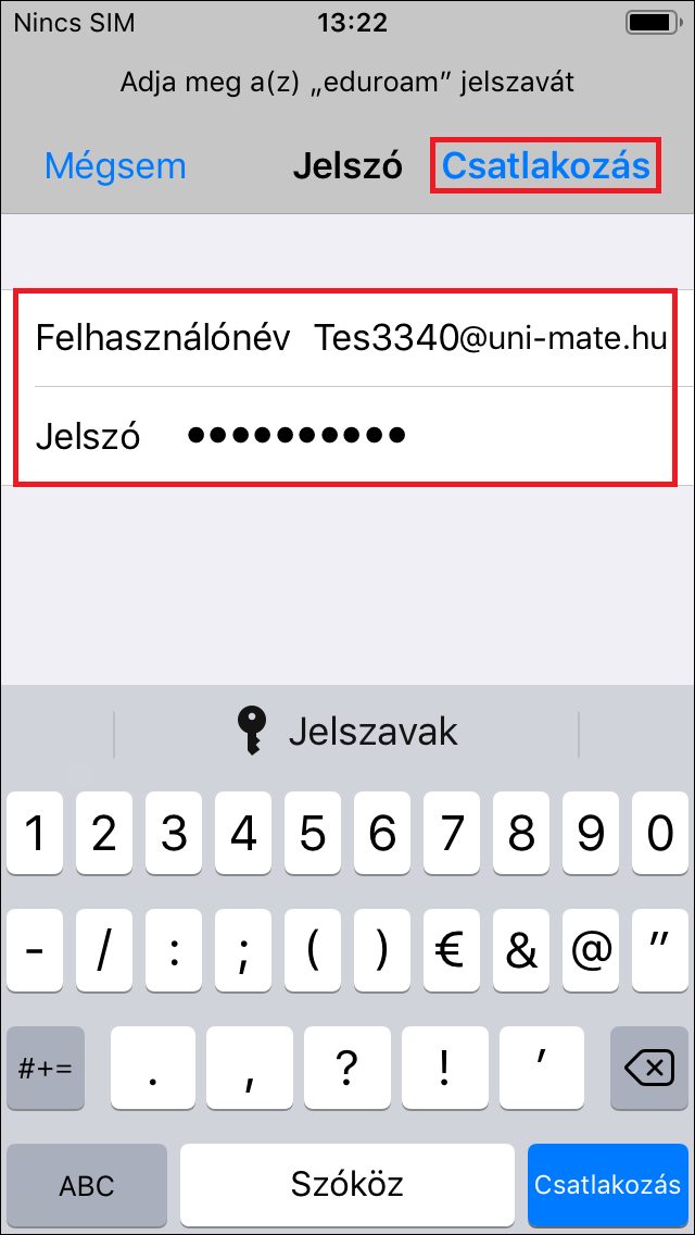 6. Amennyiben jól adta meg az adatokat, a készülék csatlakozik az eduroam hálózathoz. Ezt a hálózat neve előtti pipa jelzi.