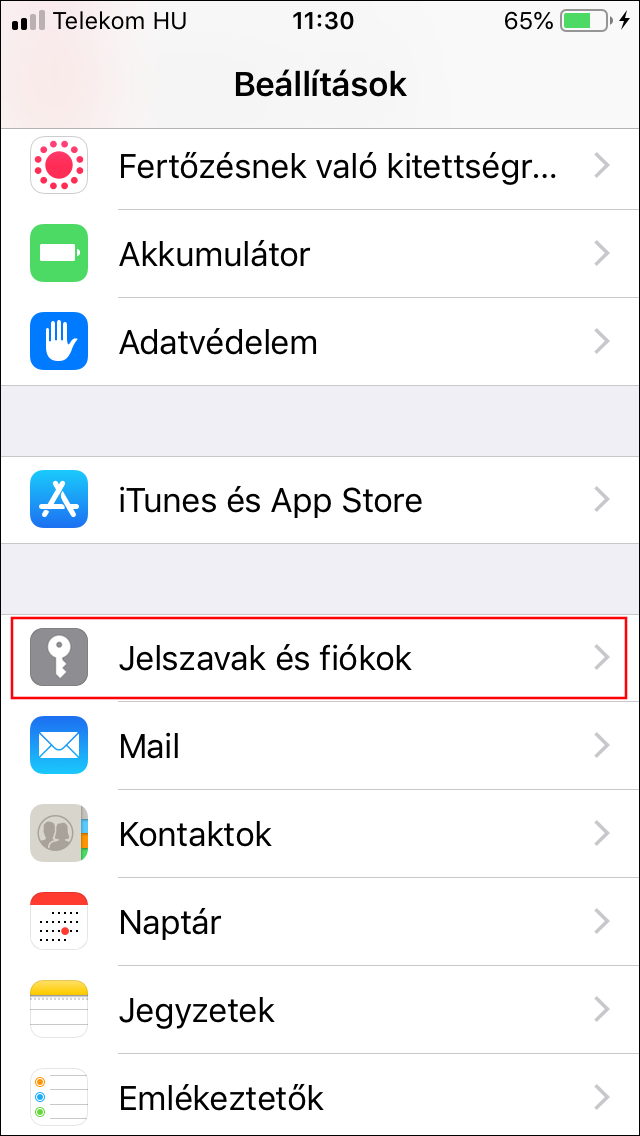 2. Válassza a Jelszavak és fiókok menüpontot.