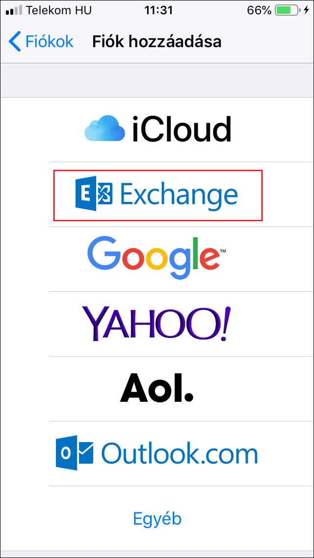 9. Amennyiben helyesen adta meg az adatokat, a postafiókja megjelenik a Fiókok területen. A Mail, Naptár, Emlékeztetők és Jegyzetek alkalmazásokkal használhatja a szolgáltatásokat.