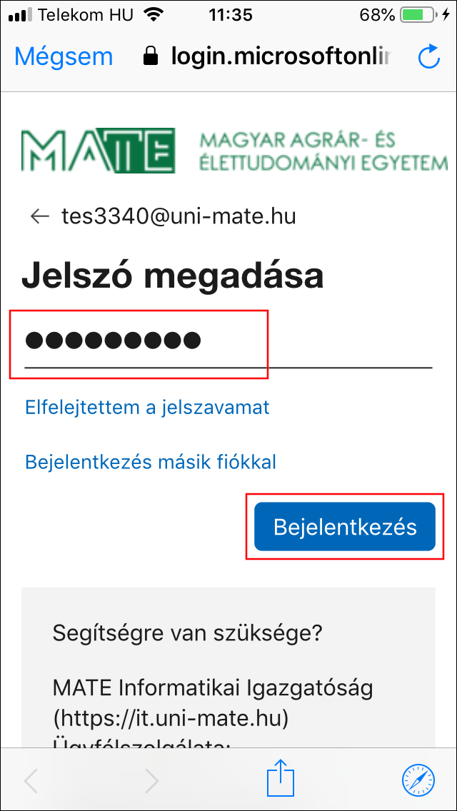 7. Adja meg a fiókhoz tartozó jelszavát és kattintson a Bejelentkezés gombra.