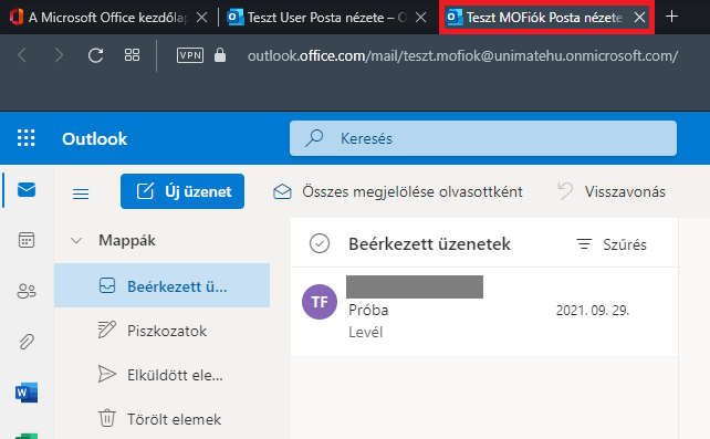 4. Ezután a postafiók megnyílik egy új böngészőlapon.