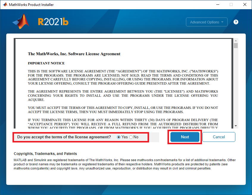 Ebben a segédanyagban csak Windows operációs rendszeren készült képek szerepelnek, mivel a MATLAB telepítésének lépései megegyeznek mind Windows, mind macOS operációs rendszerek esetén.