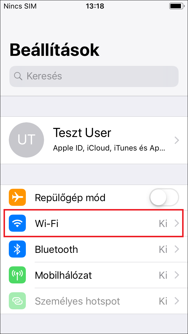 3. Ha szükséges kapcsolja be a Wi-Fi-t, majd az elérhető hálózatok közül válassza ki az eduroam-ot.